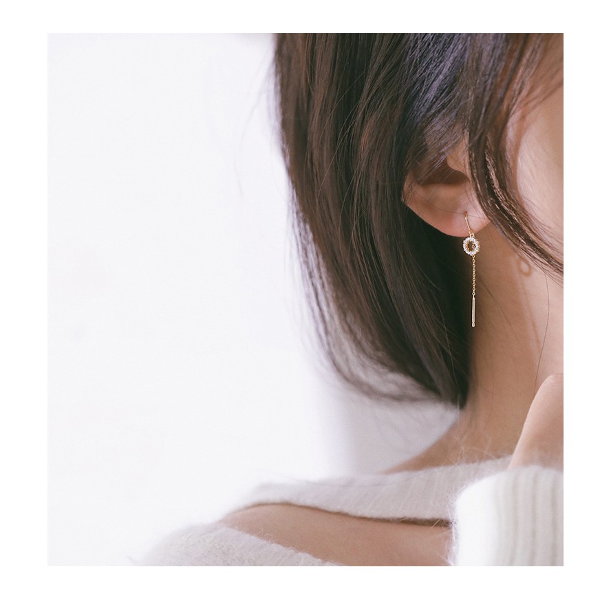 Giới thiệu Bông tai, khuyên tai bạc nữ Circle Heaven dáng dài đính đá xinh xắn, sang chảnh K30 | TRANG SỨC BẠC HARMONY