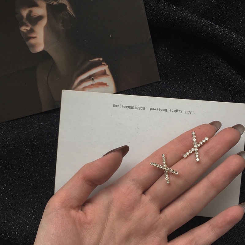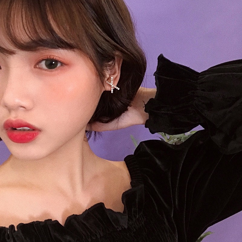 - Mẫu 1: Khuyên tai mạ bạc 925 hình chữ thập đính ngọc nhân tạo.