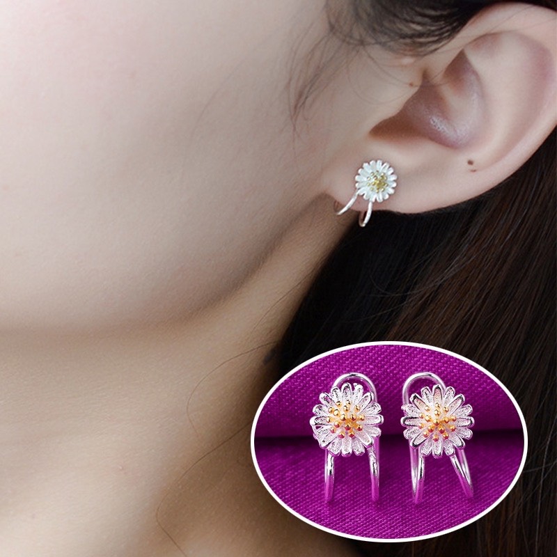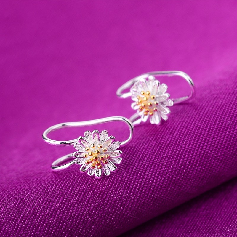 - Mẫu 4: Bông tai bạc họa tiết hoa cúc thời trang.