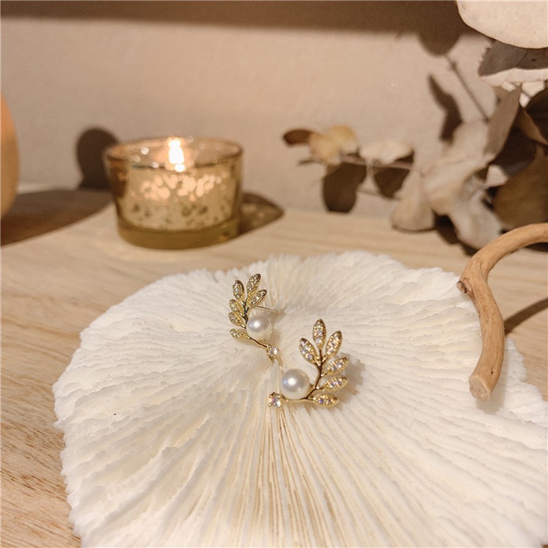 - Mẫu 6: Bông tai mạ bạc 925 hình chiếc lá đính ngọc phong cách Hàn Quốc.