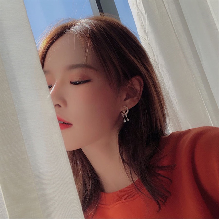 - Mẫu 3: Bông tai mạ bạc 925 hình trăng sao đính đá đầy quý phái.
