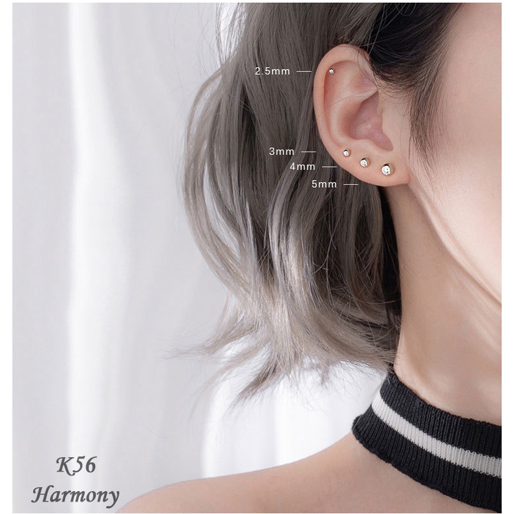 Giới thiệu Bông tai, khuyên tai unisex nam nữ tròn nhiều size hạt bi mindot basic K56 (lẻ 1 chiếc) | GEMY SILVER