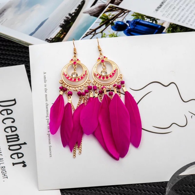 Phụ Kiện Thời Trang > Bông tai || Bông tai lông vũ bohemian - Hoa tai tua rua - Khuyên tai du mục vintage