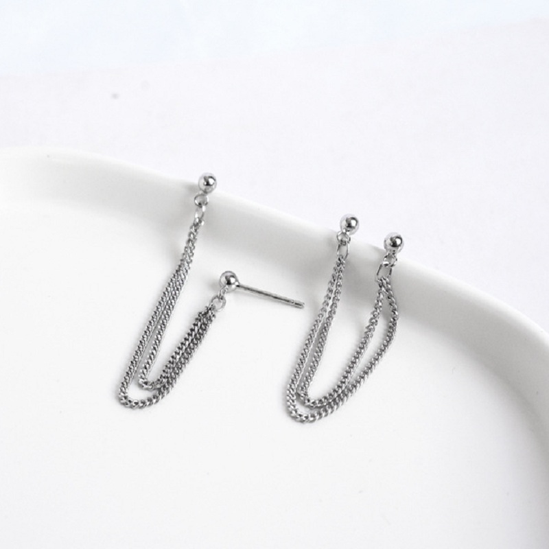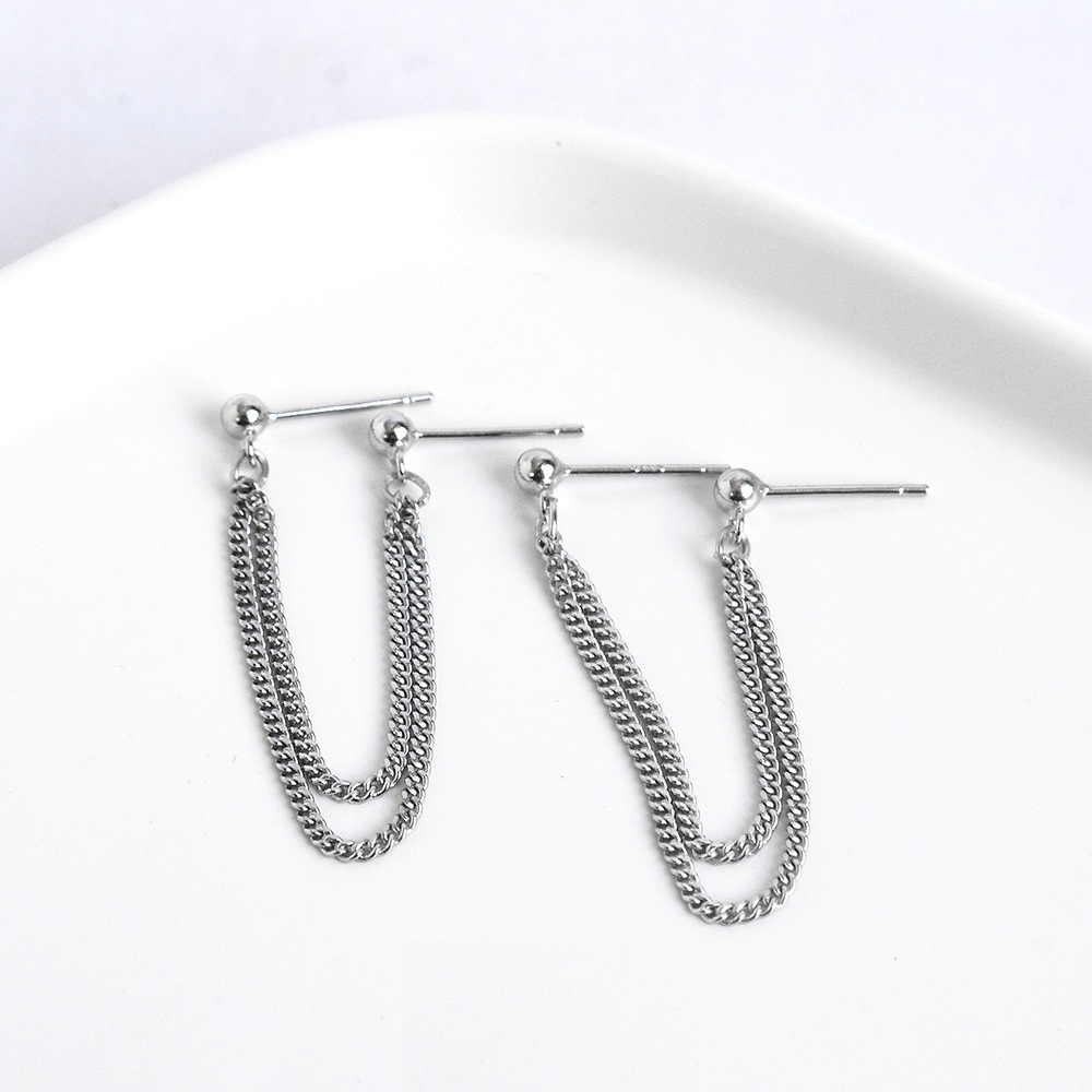 Gia công tỉ mỉ từ Titan bền đẹp, an toàn cho da. Ngâm nước thả ga, không han gỉ. Sản phẩm thiết kế daay xích mảnh tinh tế gấp chữ V giới hạn hai đầu xỏ lỗ đinh dáng gai củ ấu. Giới tính: Unisex. Màu trắng bạc bền trend. Phù hợp nhiều phong cách thời trang gothich, streetwear, dark-wear, Thích hợp làm trang sức hàng ngày và làm quà tặng. Sản phẩm bán một đôi