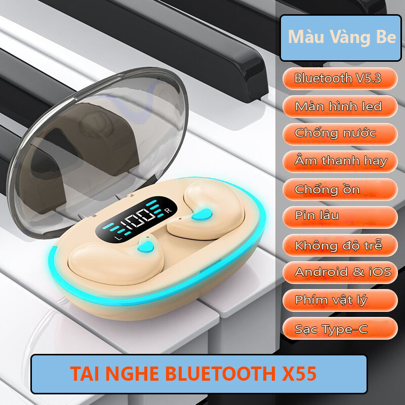 Tai nghe Bluetooth Ribi X55 là một lựa chọn tuyệt vời cho những ai yêu thích sự thoải mái và tiện lợi. Được trang bị công nghệ Bluetooth 5.3 tiên tiến, tai nghe này mang đến khả năng kết nối ổn định và thời lượng pin lâu dài hơn, giúp bạn tận hưởng âm nhạc suốt cả ngày mà không lo bị gián đoạn.