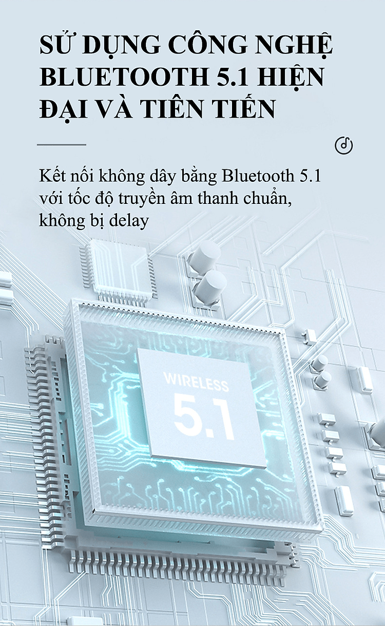 - Sản phẩm sử dụng chuẩn kết nối BLUETOOTH 5.1. Bạn có thể dễ dàng kết nối với máy PC, laptop,… để thưởng thức âm nhạc dù ở bất kỳ nơi đâu.