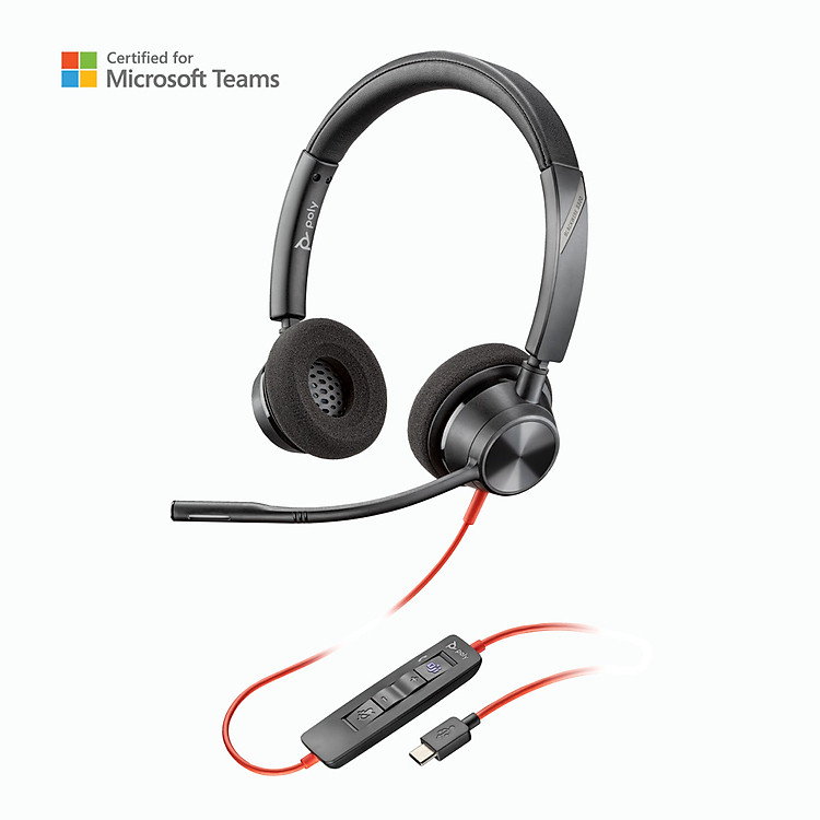 Headset Poly Blackwire 3320 đạt Chứng nhận Microsoft Teams hỗ trợ cộng tác và liên lạc dễ dàng với nút Teams chuyên dụng để truy cập tức thì vào Ứng dụng Teams.