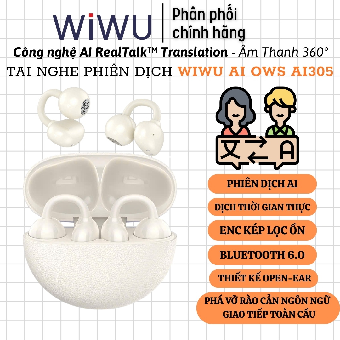 Giới thiệu Tai nghe ENC phiên dịch Open-Ear AI RealTalk Translation bluetooth 6.0 không dây WIWU OWS Ai305 - Bluetooth 6.0, dịch thời gian thực, Âm Thanh 360°, Directional Sound Transmission, Dynamic Bass 9 & Surround Sound 9 - Hàng nhập khẩu
