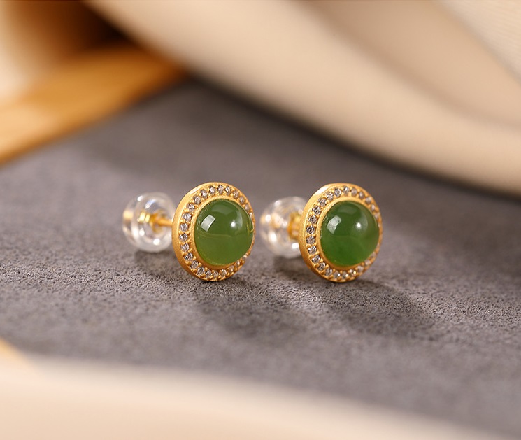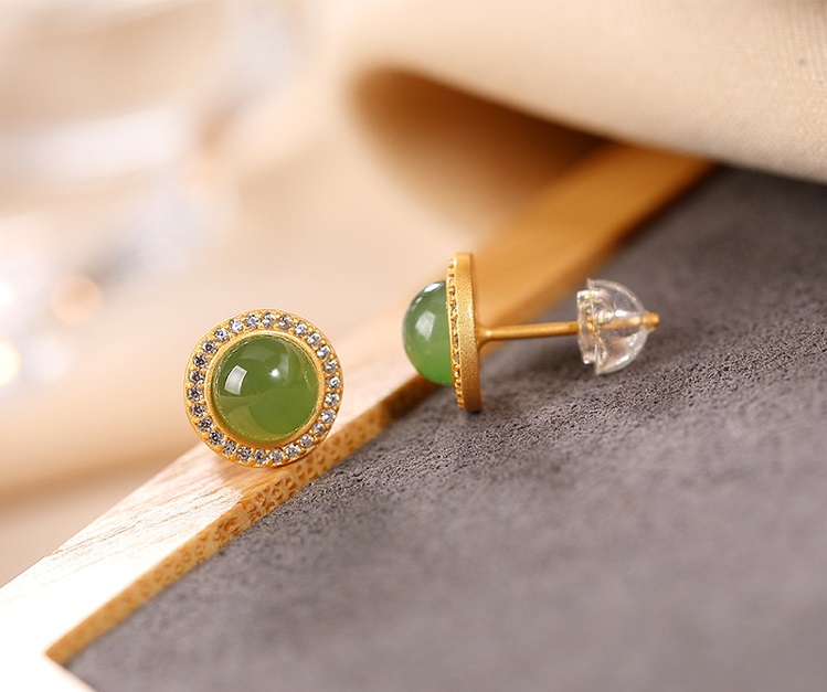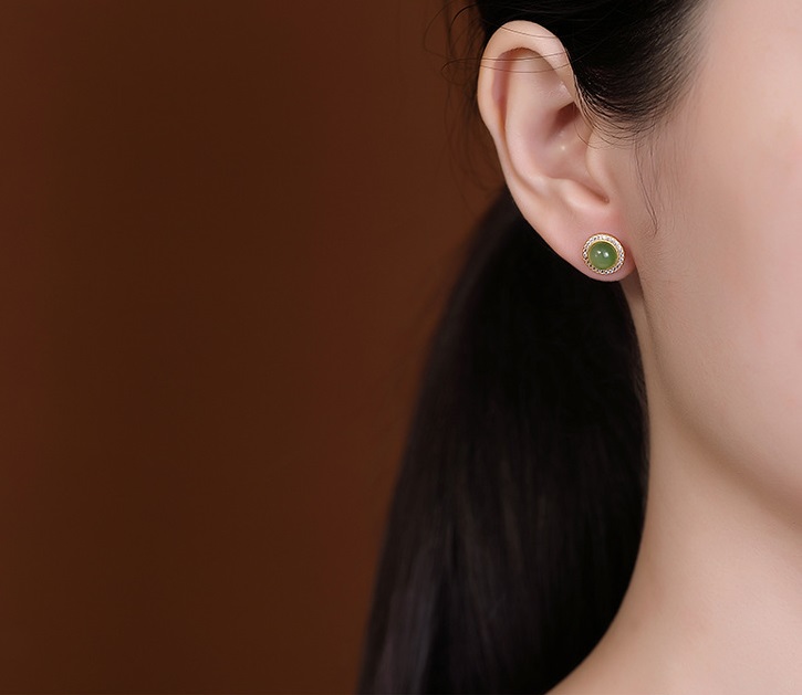 Kích thước: Đường kính bông tai 9mm, ngọc bích 6mm