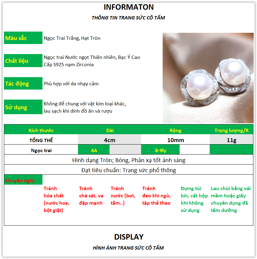 Kích thước | Tổng thể 4cmKích thước hạt ngọc 10mm |