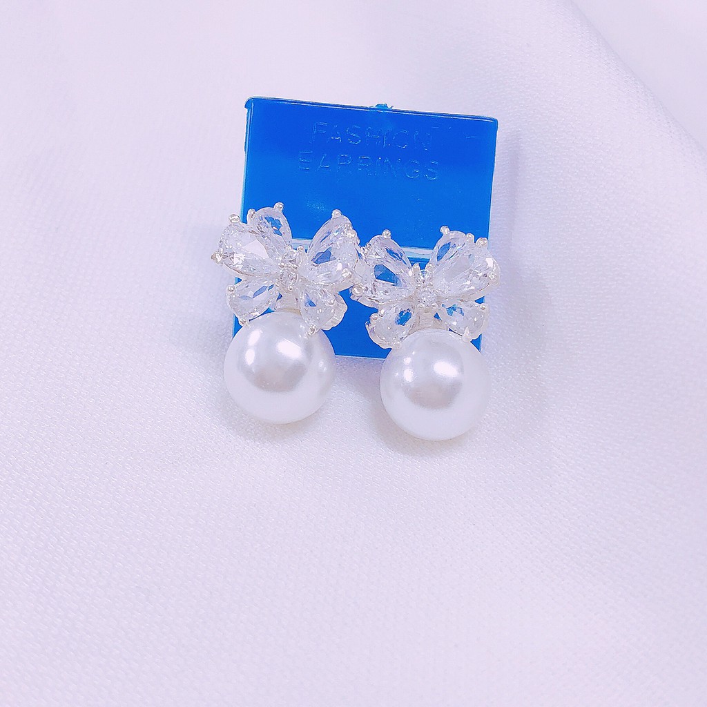 Giới thiệu Bông tai nữ bạc ta hình nơ đá gắn hạt châu 10ly - Khuyên tai bạc Bibi