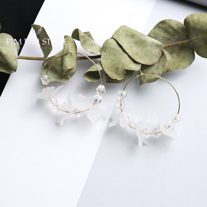 Giới thiệu Bông tai nữ Hàn Quốc hình cánh hoa trắng tròn kiểu dáng thanh lịch cá tính phụ kiện thời trang đẹp giá rẻ