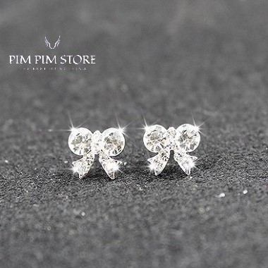 Giới thiệu Bông tai nữ Hàn Quốc hình chiếc nơ màu bạc nhỏ gọn trẻ trung