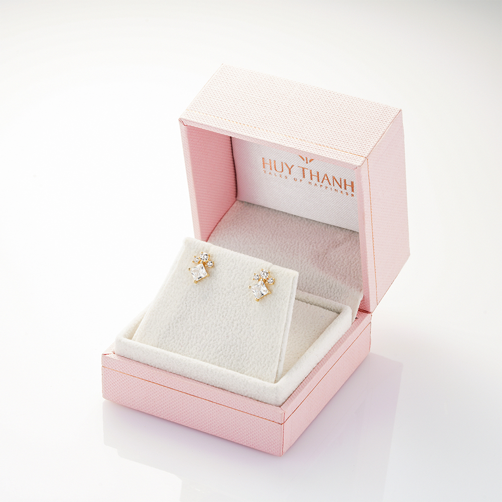 Khi khách hàng mua sản phẩm bông tai vàng sẽ có bộ phụ kiện đi kèm có in logo của thương hiệu gồm: