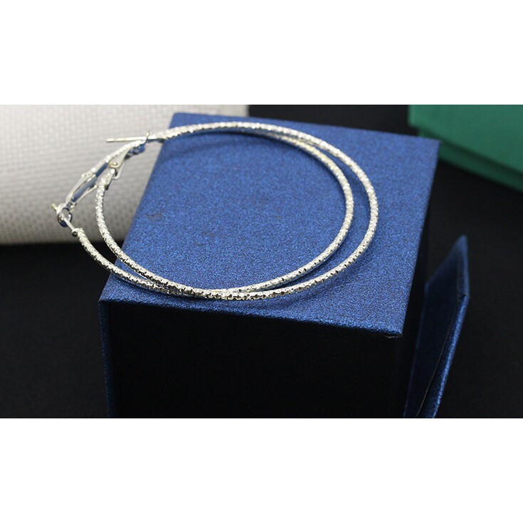 Phụ Kiện Thời Trang > Bông tai || bông tai tròn vân xi bạc 6cm S925