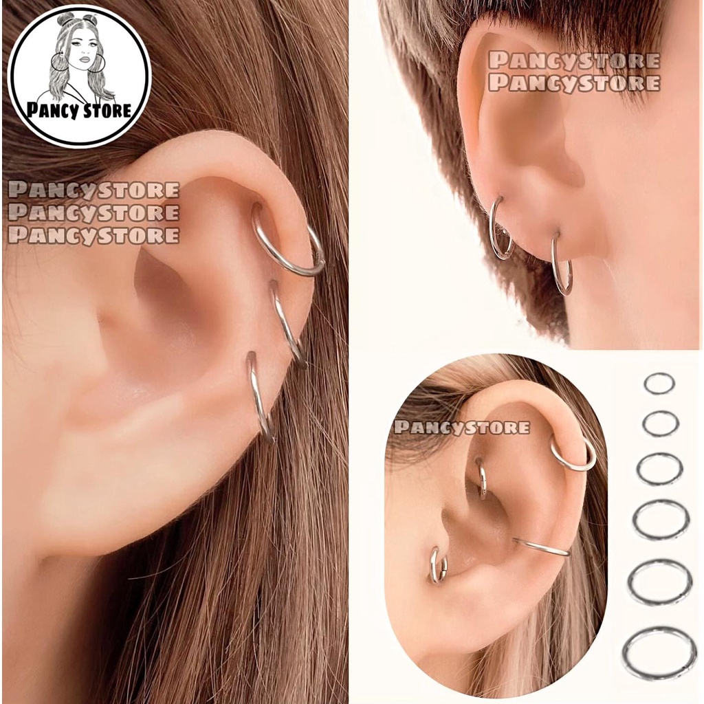 Giới thiệu bông tai tròn nút bật slim vòng mỏng khuyên tai trơn nam nữ siêu bền Unisex