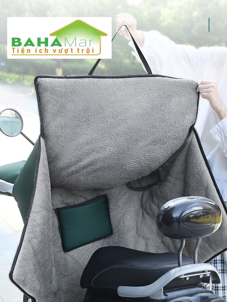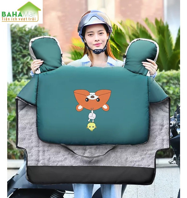 TẤM ÁO CHẮN GIÓ ĐI XE MÁY MÙA ĐÔNG (KÈM BAO TAY) CHỐNG LẠNH KHÔNG THẤM NƯỚCMô tả1. Che chân hoàn toàn chống gió, trong đó có sự mở rộng và mở rộng bên cánh, cung cấp bảo vệ đa tầng.2. Tính năng thêm vào nhung lông giữ ấm, và nó lớp vải nhung lót tạo thoải mái, có lông tơ, mềm mại và không gây kích ứng.3. Thiết kế từ vải chống thấm nước bên trong và dưới đáy nên dễ dàng vệ sinh.4. Có dải phản quang để giúp an toàn hơn khi đi vào ban đêm.5. Rất dễ dàng lắp đặt, không cần dụng cụ. Bạn chỉ cần cố định bước đến trước trong cốp xe tay ga.6.Thông số kỹ thuật:Tên: Xe Tay Ga Chân Nắp với Tay Cầm BịtKích thước (khoảng):phần trên chiều dài là khoảng 57cm/22.44in, chiều rộng-70cm/27.56in.Phần dưới chiều dài-71cm/27.95in, chiều rộng-90cm/35.43in, và bên cánh dài-70cm/27.56inChất liệu: Lớp bên ngoài của mật độ cao vải không thấm nước, lớp giữa dày sợi polyester, lớp bên trong ấm lông tơTrọng lượng (khoảng): 950gCác Model phù hợp: UniversalDanh Sách đóng gói:Xe trượt scooter Chân Nắp với Tay Cầm Bịt * 1