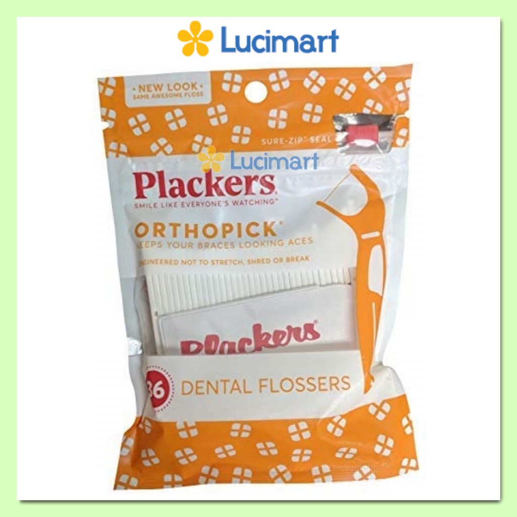 Tăm chỉ nha khoa Plackers Orthopick dùng cho răng niềng, 1 gói 36 cây [Hàng Mỹ]