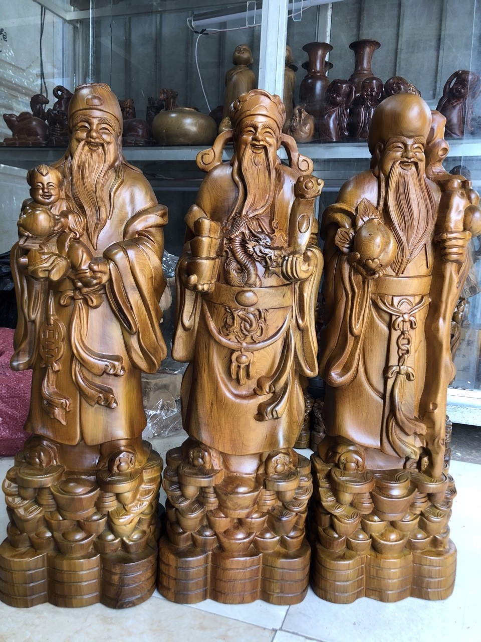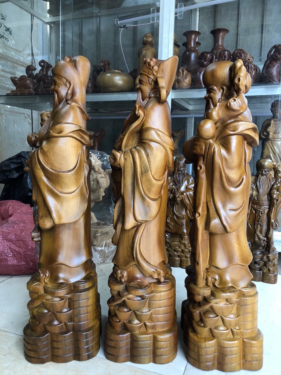 _ Bộ tượng phật tam đa phúc lộc thọ được làm bằng chất liệu gỗ bách xanh tự nhiên 100%