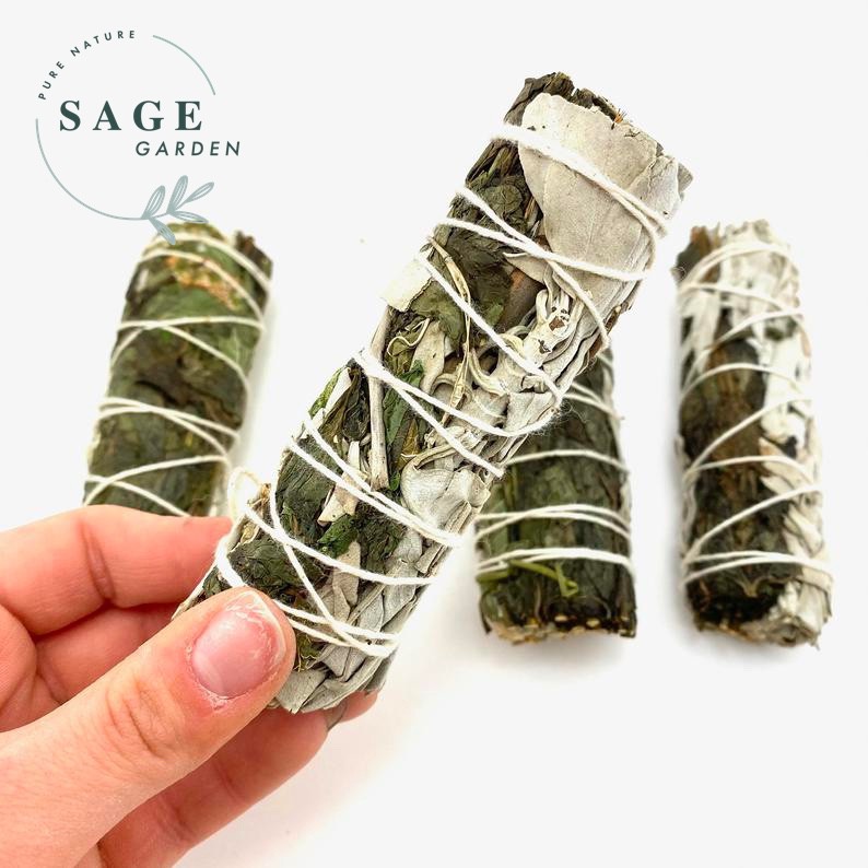 Xô Thơm trắng (White sage) tượng trưng cho sự bảo vệ, Bạc hà (Peppermint) là một loại thuốc chữa bệnh nên rất tốt cho việc giúp bạn vượt qua những mệt mỏi, căng thẳng trong cuộc sống. Bên cạnh đó bó Xô thơm kết hợp này còn có tác dụng tăng cường sức khoẻ và bảo vệ bạn khỏi những điều không tốt cho cơ thể và làm mới tâm hồn bạn.