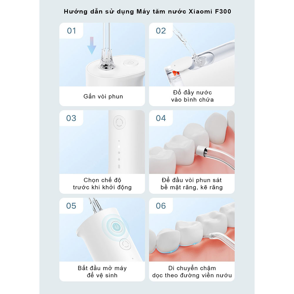 Vệ sinh răng miệng bằng chỉ nha khoa thì khó, còn dùng bàn chải thông thường thì lại không thể làm sạch hết các mảng bám trong khoang miệng, nhất là ở kẽ răng. Chính vì vậy, với thiết kế cải tiến đi kèm 3 vòi phun chuyên biệt, máy tăm nước Xiaomi Mijia F300 sẽ là một trang bị cần thiết để giúp bạn loại bỏ 99.4% mảng bám và làm sạch khoang miệng toàn diện một cách tối ưu.