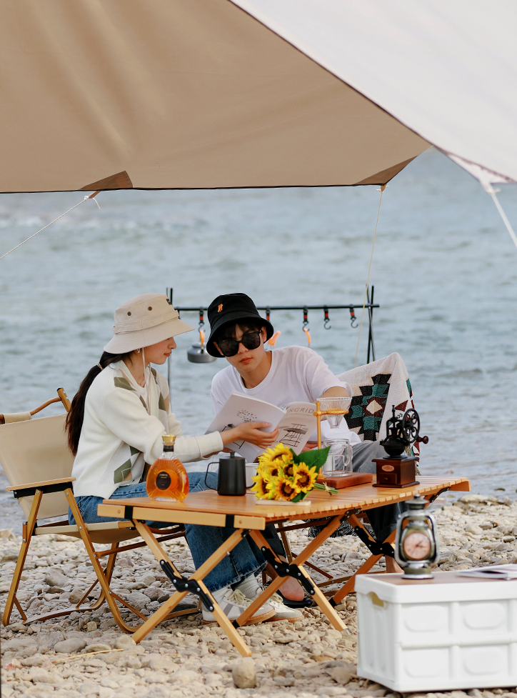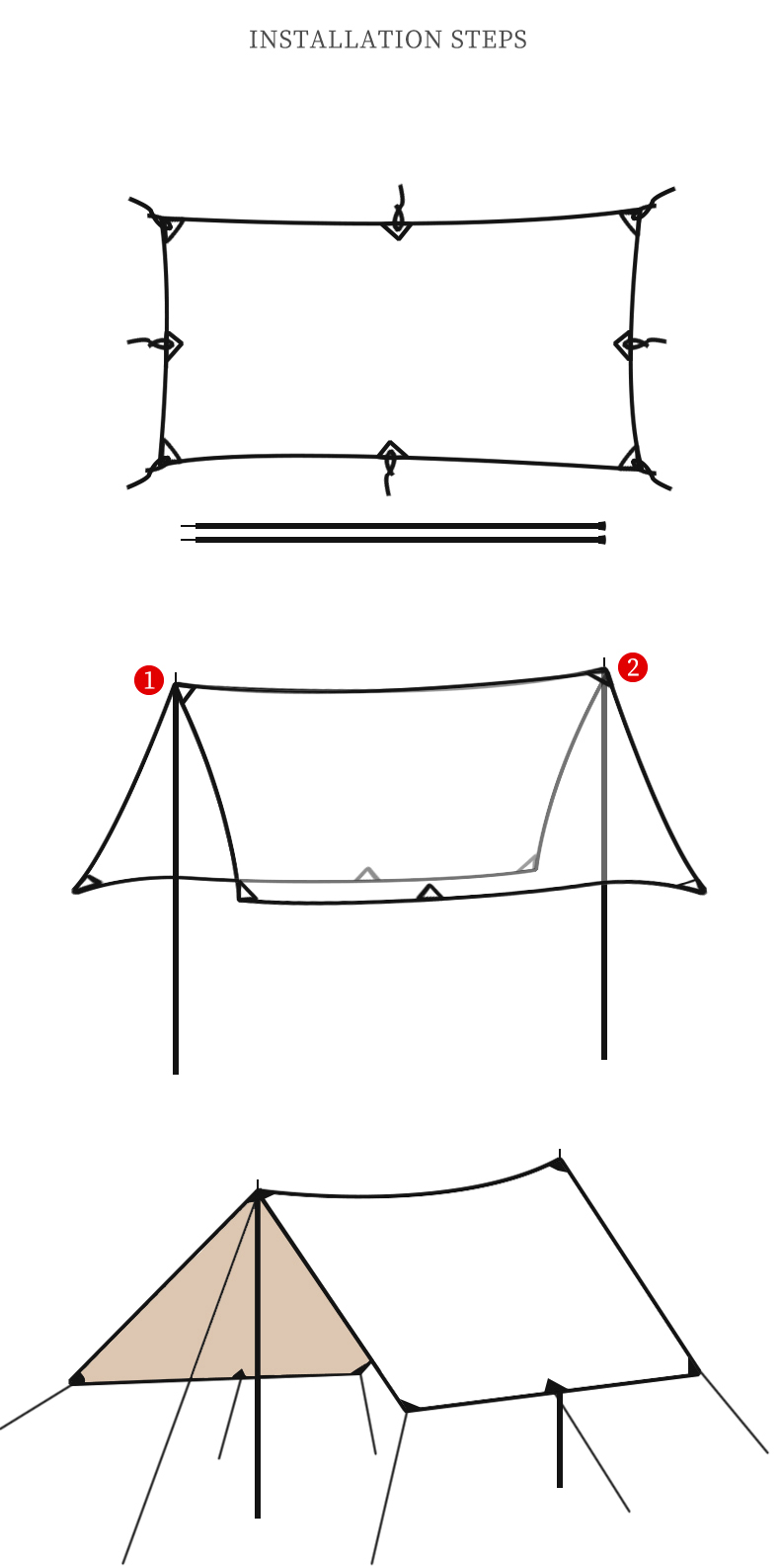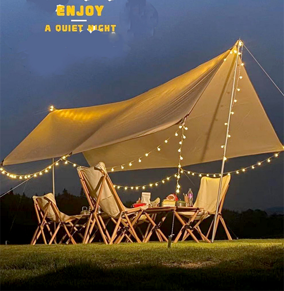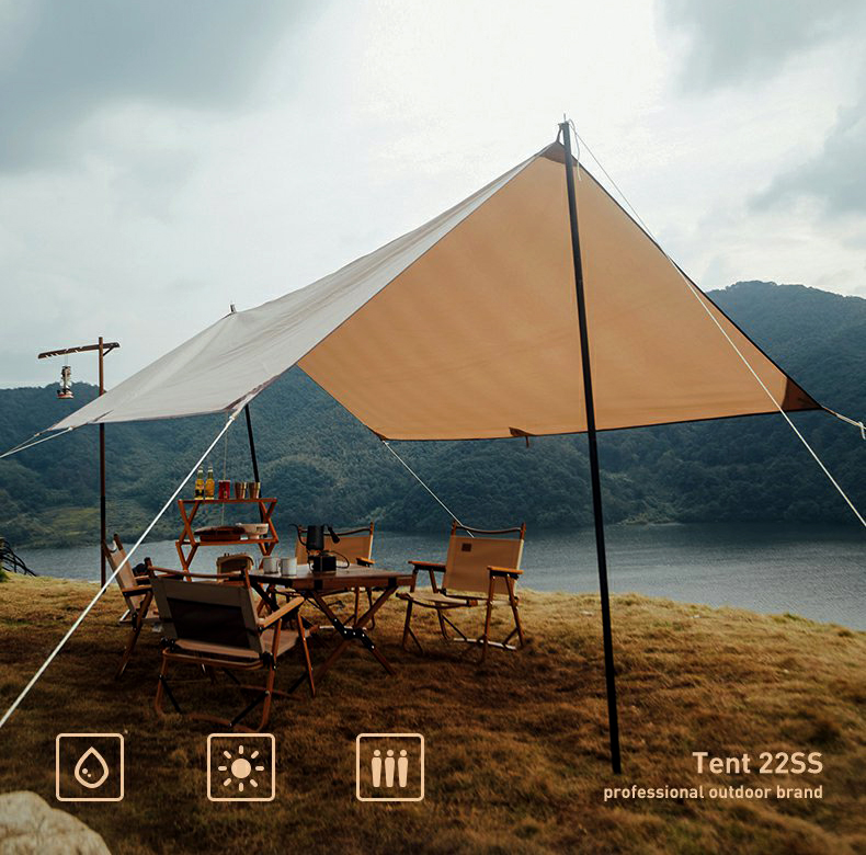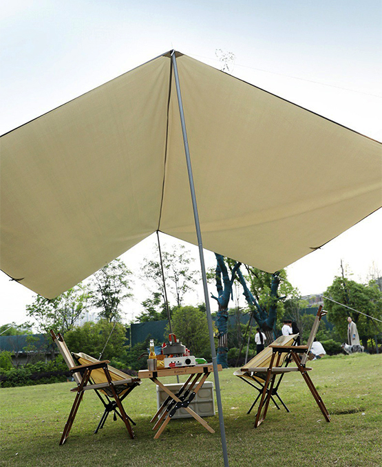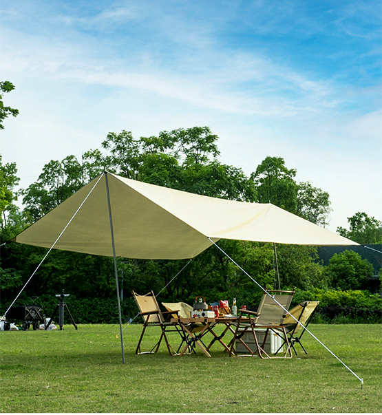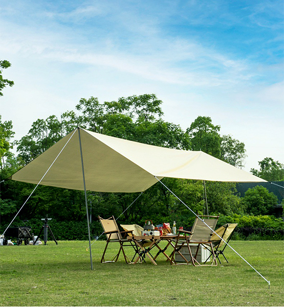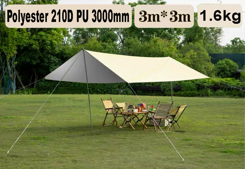 Bộ Tấm tăng/tarp màu be che nắng, che mưa che lều cắm trại picnic đủ phụ kiện dây cọc chống và túi 3m×3m và 3mx5m màu be + 2 cây trụ chống 2m4 +6 cọc+6 dây+6 khoá