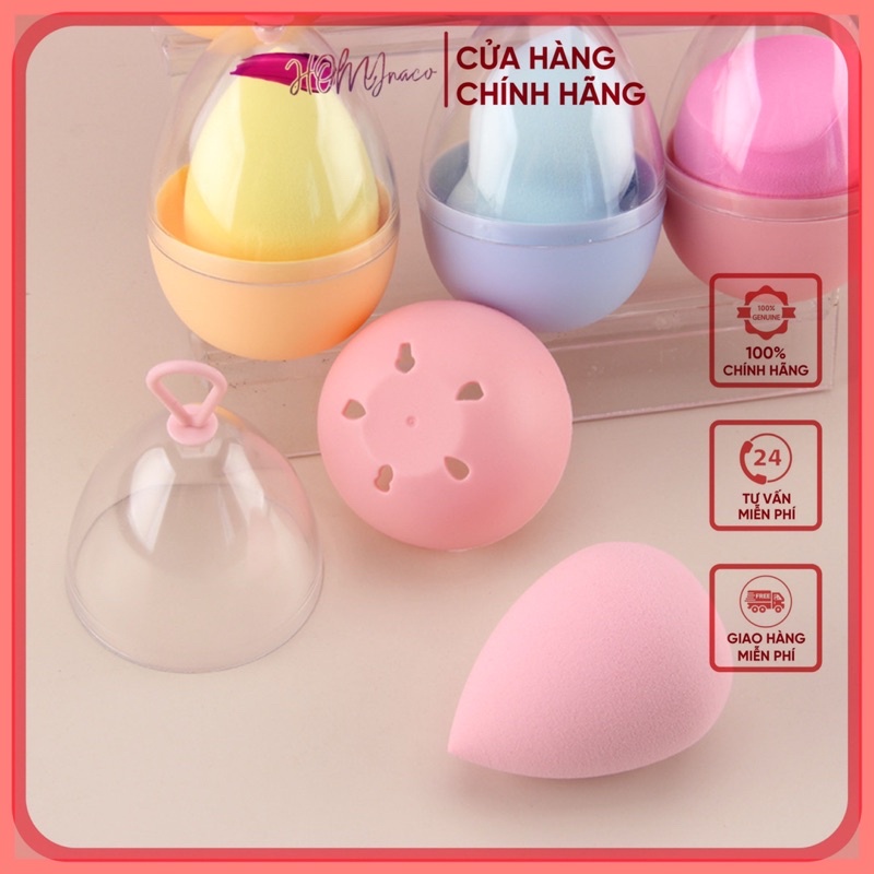 Bông tán kem nền có hộp trứng tròn - Mút xốp - Buff đánh kem makeup chuyên nghiệp siêu mềm mịn