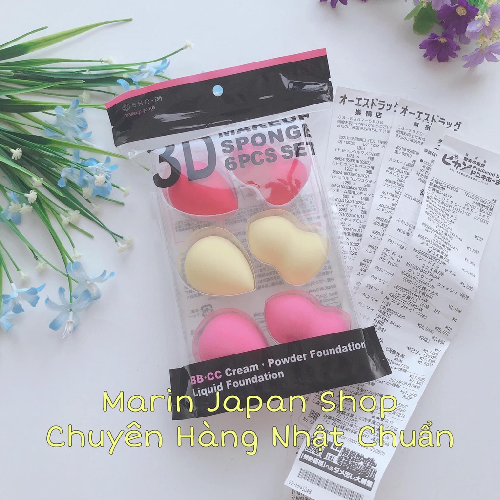 Bông tán kem nền trang điểm hồ lô 3D cao cấp Makeup Sponge Nhật Bản Set 6 miếng