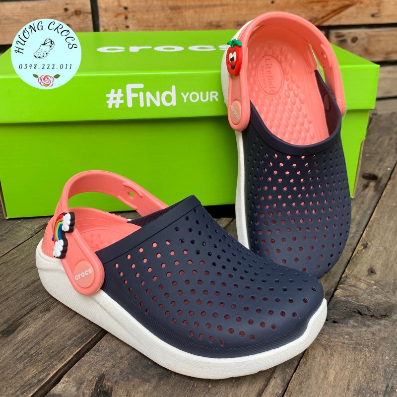 Giới thiệu [Tặng 10 jibit] - Dép sục trẻ em cross Literide màu navy hồng