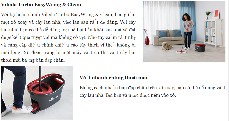 Giới thiệu [TẶNG 3 BÔNG LAU]Cây Lau Nhà Thông Minh Vileda Turbo EasyWring Nhập Đức, Bộ Lau Nhà Gồm Chổi Lau Nhà Và Xô Đựng