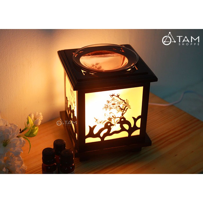 Giới thiệu [TẶNG BÓNG ĐÈN] Đèn xông tinh dầu điện bằng gỗ họa tiết chim én số 11