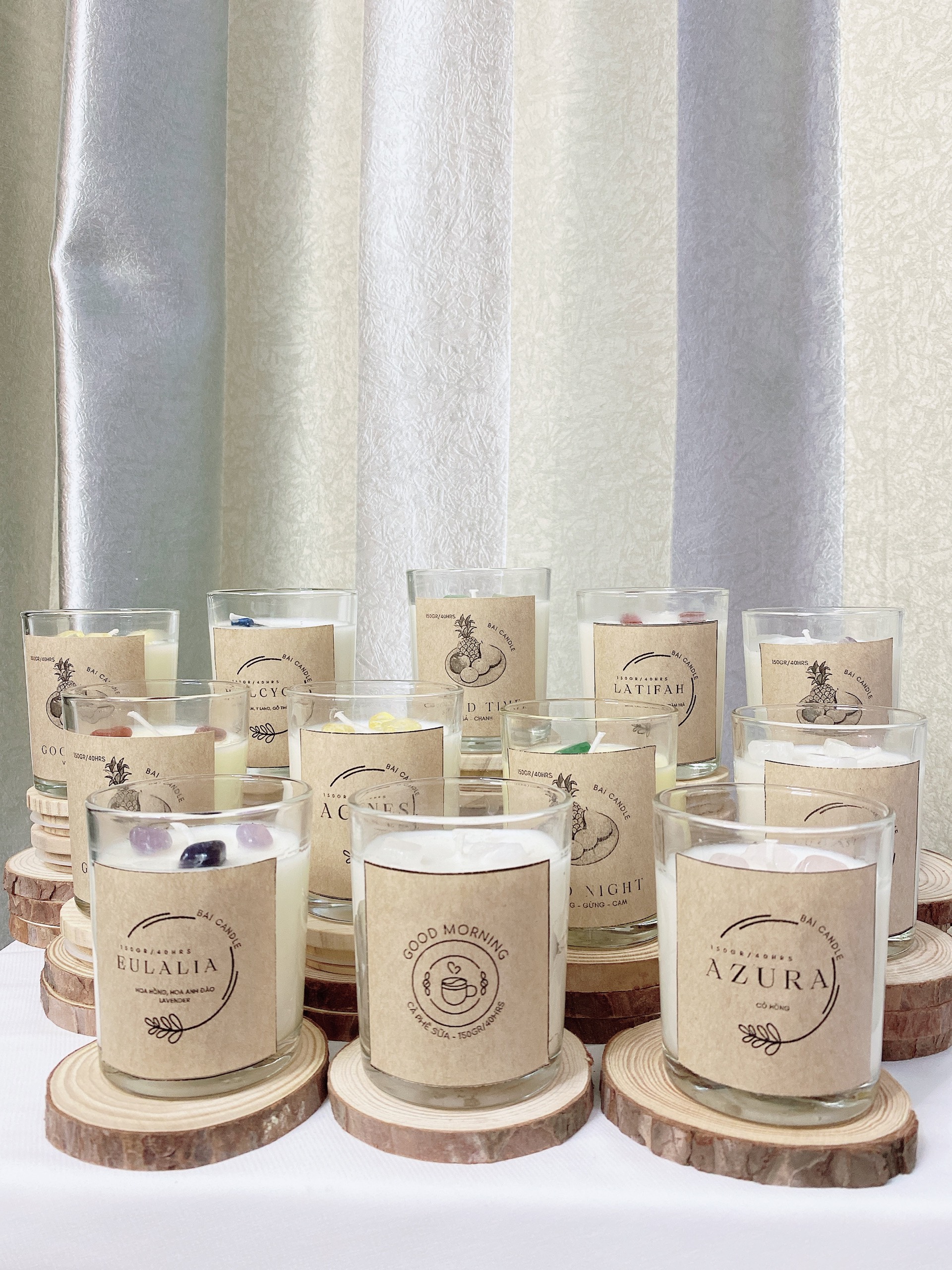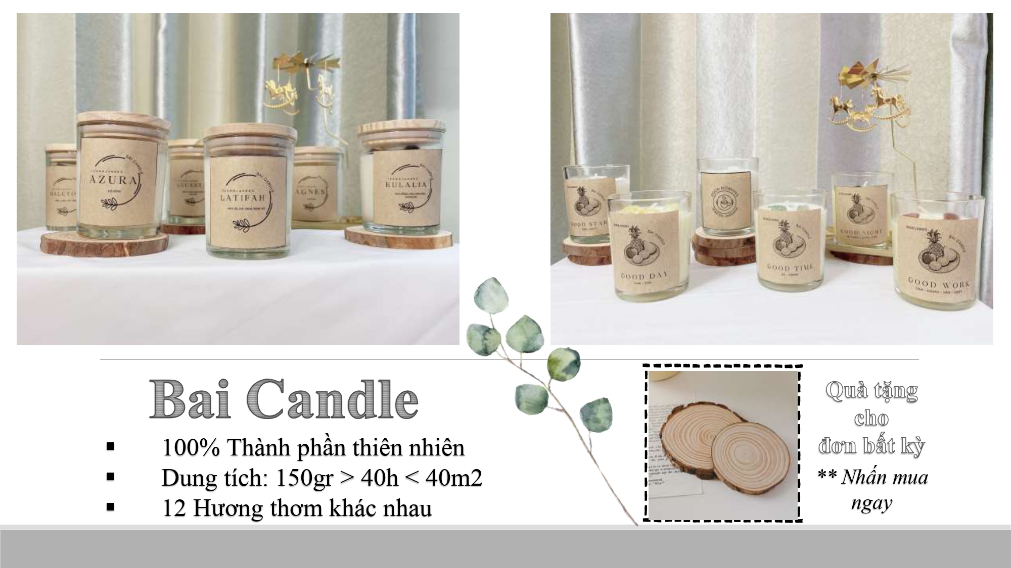 Nến thơm Bai Candle được sản xuất thủ công với các nguyên liệu hoàn toàn từ tự nhiên, an toàn với người sử dụng với thành phần Mix sáp ong – cọ - nành cùng với tinh dầu thiên nhiên