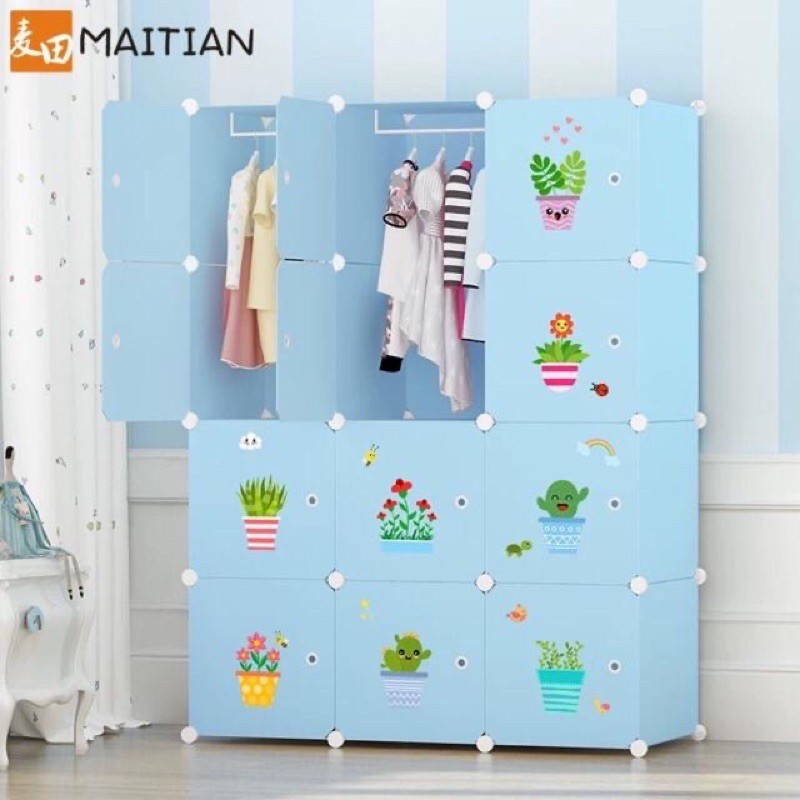 ☘️TỦ đựng quần áo 12 ô lắp hoàn thiện: cao 150cm x rộng 110cm x sâu 47cm. Chi tiết phụ kiện tủ nhựa ghép đa năng 12 ô. Tấm thân 35*45cm: 31 Tấm lưng 35*35 cm: 12 Cánh cửa 35*35 cm: 12 Chốt : 42 cái Nam châm : 24 cái Thanh treo : 2 cái Búa gỗ : 1 cái Giấy hướng dẫn lắp tủ : 1 tờ ưu điểm của tủ nhựa ghép đa năng 12 ô: Chất liệu nhựa PP( Polypropylen) an toàn thân thiện với môi trường Khoang để đồ bố trí linh hoạt tháo lắp dễ dàng Sức chứa lớn mỗi ô tủ chịu được trọng lượng 12kg Mẫu mã đa dạng phong phú, màu sắc tươi mới Đặc biệt khách hàng có thể tùy ý lựa trọn màu sắc,số ô và lựa trọn cửa tủ như mong muốn. Chất liệu tủ nhựa ghép đa năng Tủ được làm từ tấm nhựa PP ( Polypropylen) an toàn với môi trường. Tấm nhựa có độ dày 0.3-0.4mm,xung quanh được gia cố bằng khung thép có sơn tĩnh điện, đường kính khung thép là 4mm. Các khung thép liên kết với nhau qua những chốt nhựa rất chắc chắn. Chốt nhựa làm từ ABS ( Acrylonitrile Butadiene Styrene copolymers)vô cùng dẻo dai và bền bỉ. Thanh treo được làm bằng thép và được sơn tĩnh điện. Nam châm được gắn vào vị trí mép cửa tủ để làm nhiệm vụ giữ cánh tủ nhà bạn không bị hở khi đóng lại.