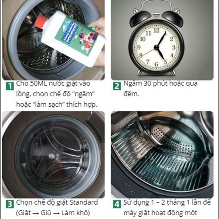 CÔNG DỤNG KHI SỬ DỤNG Nước Tẩy Lồng Máy Giặt WAHSING POWDER Chai 500ml: