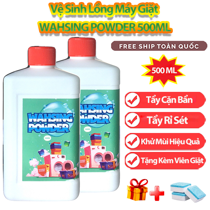 [Tặng Viên Tẩy] Nước Tẩy Lồng Máy Giặt WAHSING POWDER Chai 500ml, Mùi Dễ Chịu Vệ Sinh Khử Khuẩn Lồng Giặt Hiệu Quả