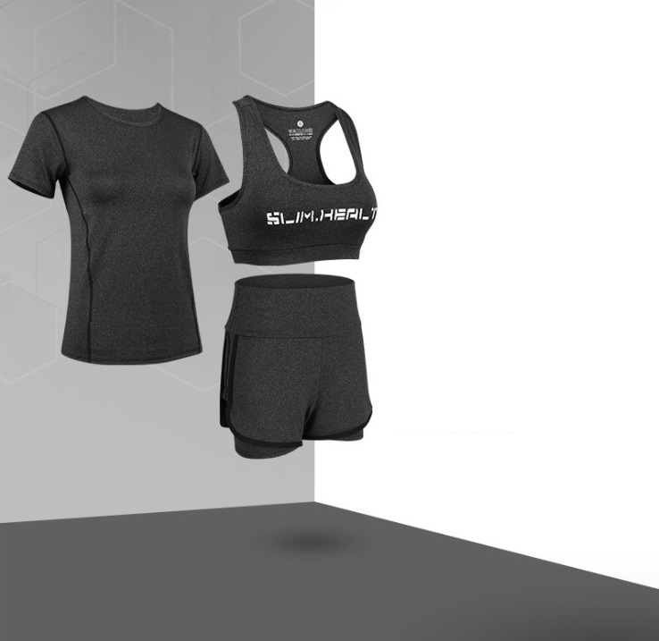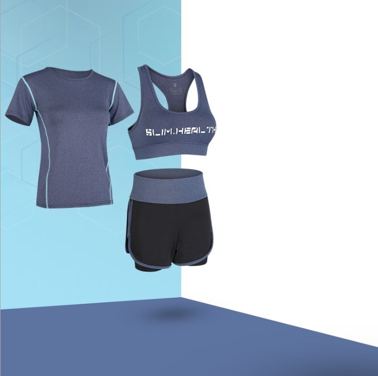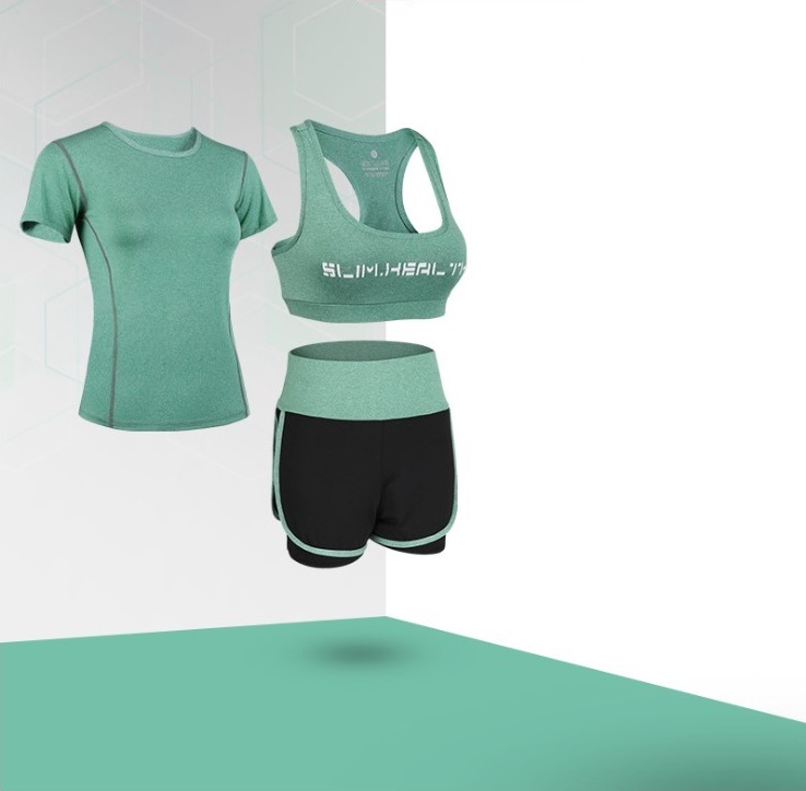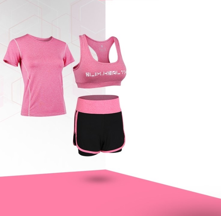 - Set đồ tập GYM YOGA nữ gồm 3 món là: áo thun, áo bra có đệm mút và quần đùi 2 lớp