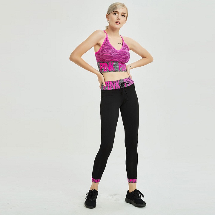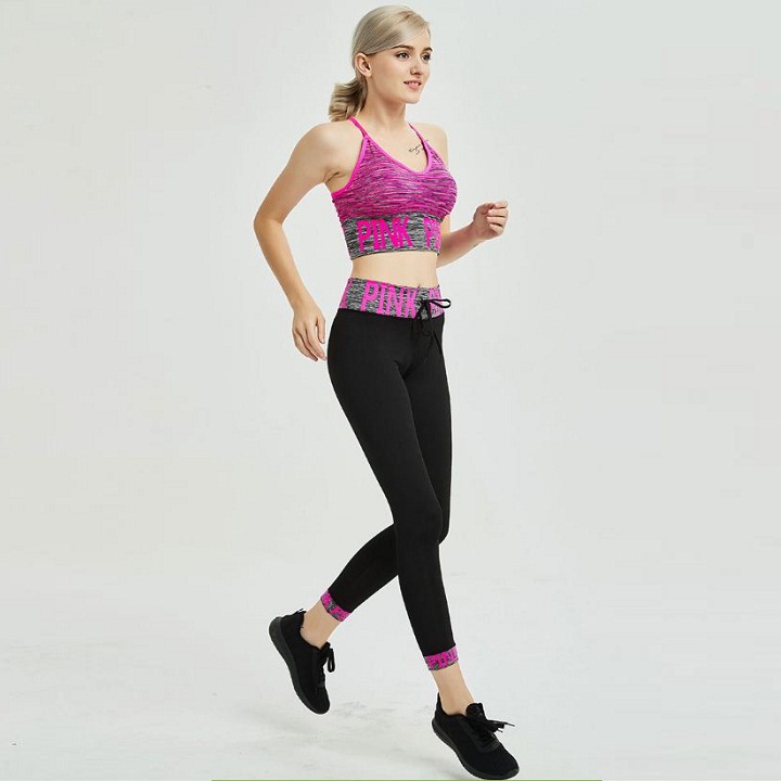 Chất liệu: set đồ tập GYM Pink nữ sử dụng chất vải thun dệt kim co dãn 4 chiều, chất vải mát chuyên may đồ tập