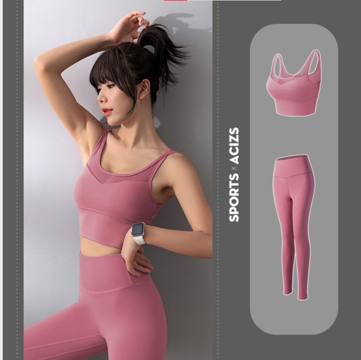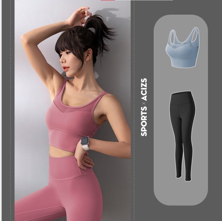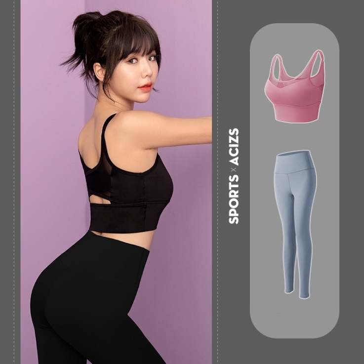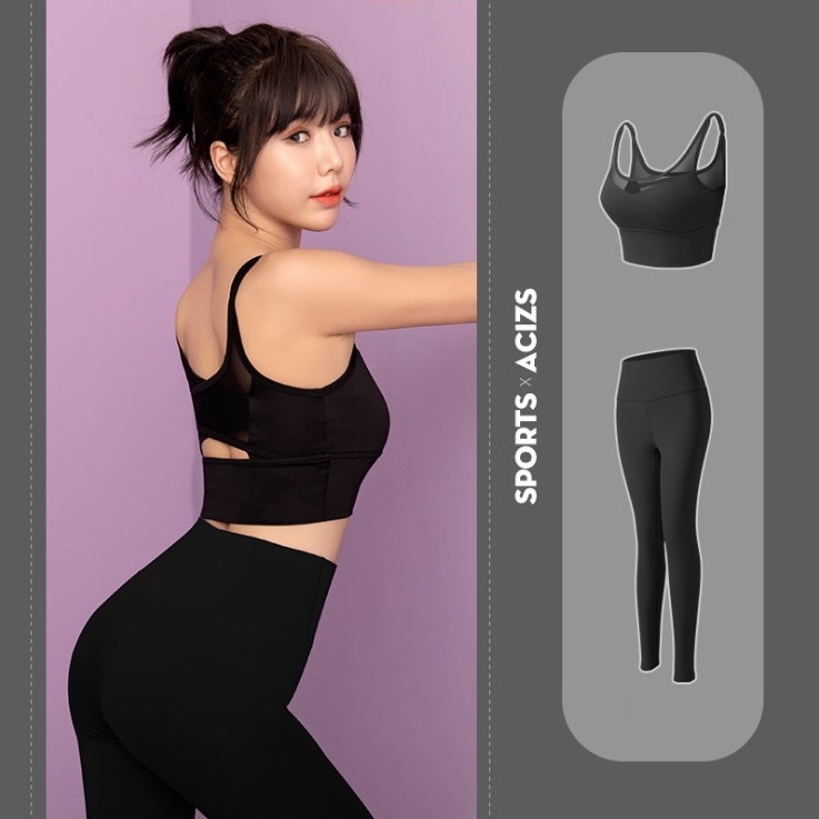 Bộ Đồ Tập GYM Nữ Phối Lưới - Set Quần Áo Thể Thao Tập GYM YOGA Nữ Áo Bra vs Quần Dài Trẻ Trung Năng Động