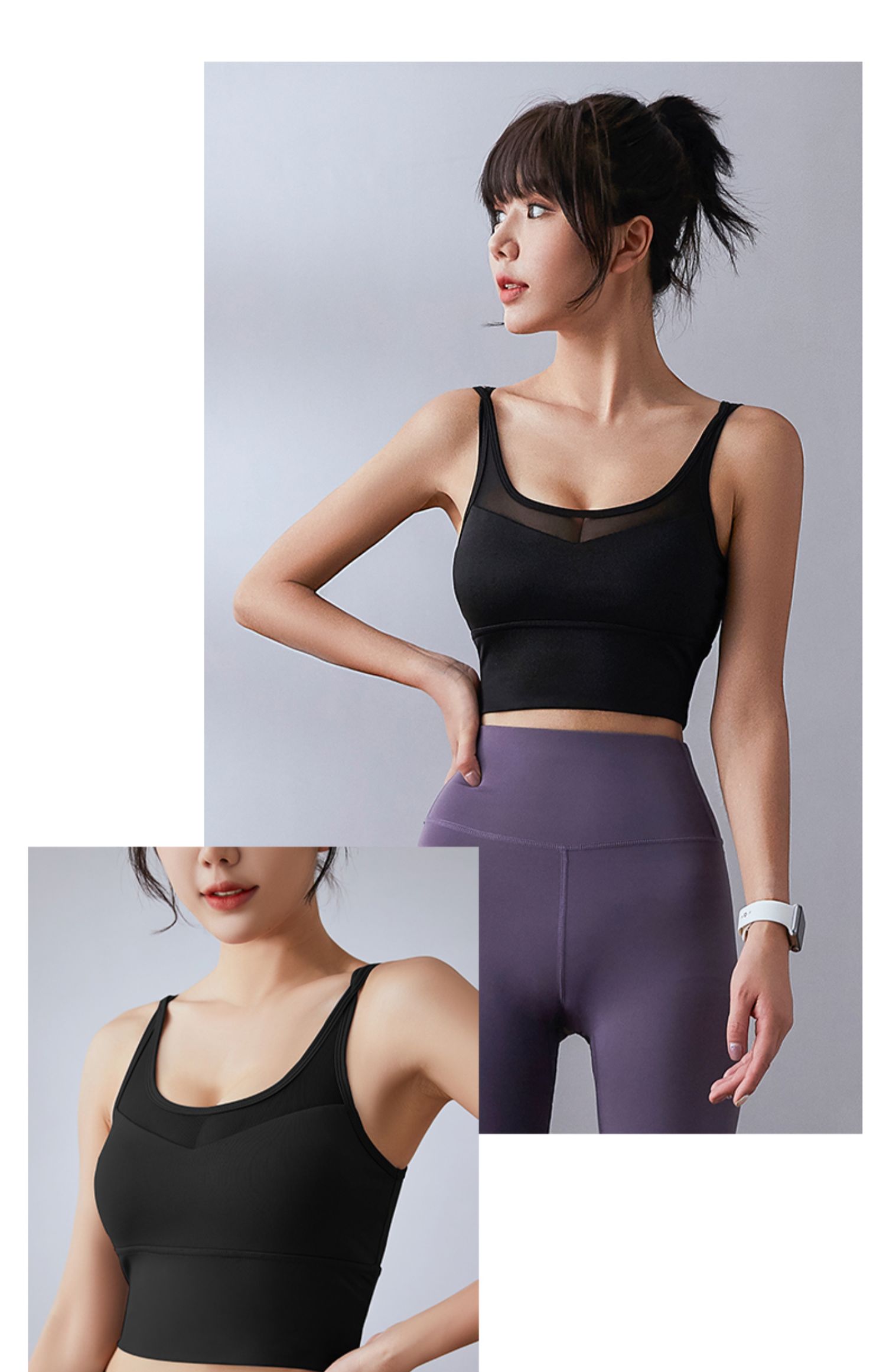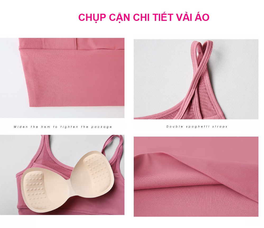 - Áo bra có đệm mút, ôm sát nâng đỡ vòng 1, phần ngực dưới bó sát cơ thể. Áo có khe hở để thay đổi đệm mút bên trong
