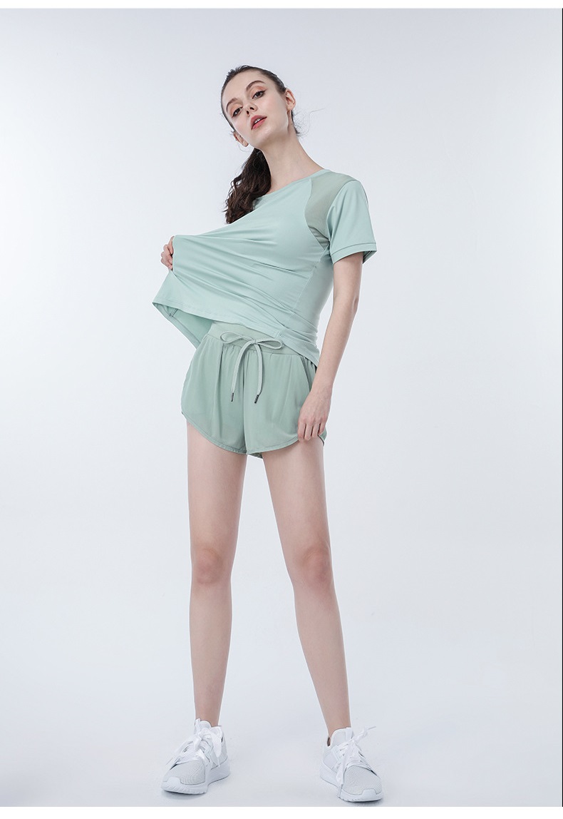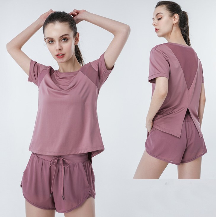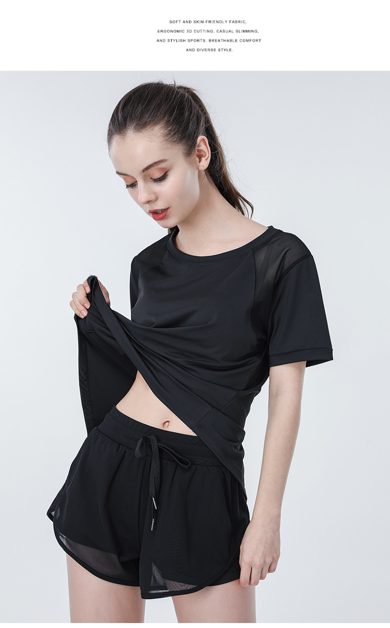 Bộ đồ thể thao lưới thoáng khí phù hợp với phụ nữ quần short ngắn tay quần áo yoga Set Bộ Đồ Quần Sooc Áo Thun Phối Lưới Thể Thao Nữ ( Đồ Tập Gym, Yoga )