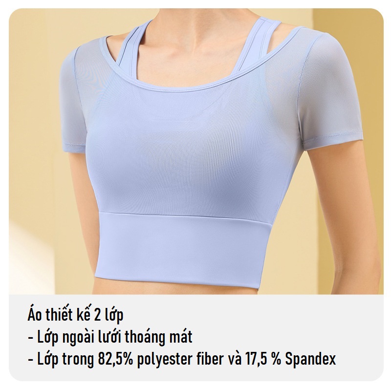 ► Áo 2 lớp, lớp ngoài lưới - Lớp trong 82,5% polyester fiber và 17,5 % Spandex