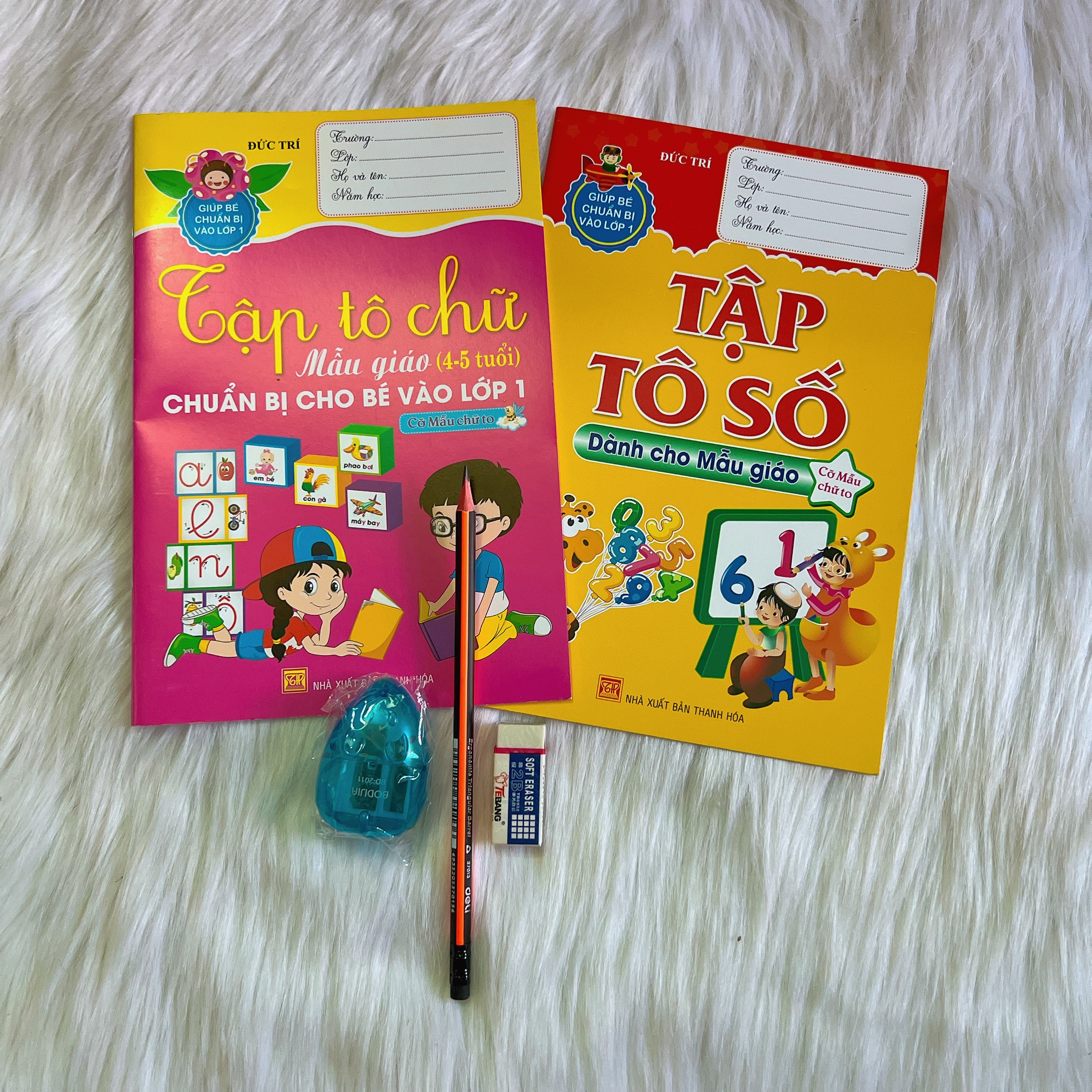 Combo tập tô chữ, số, bút chì 2B, gôm, chuốt cho bé