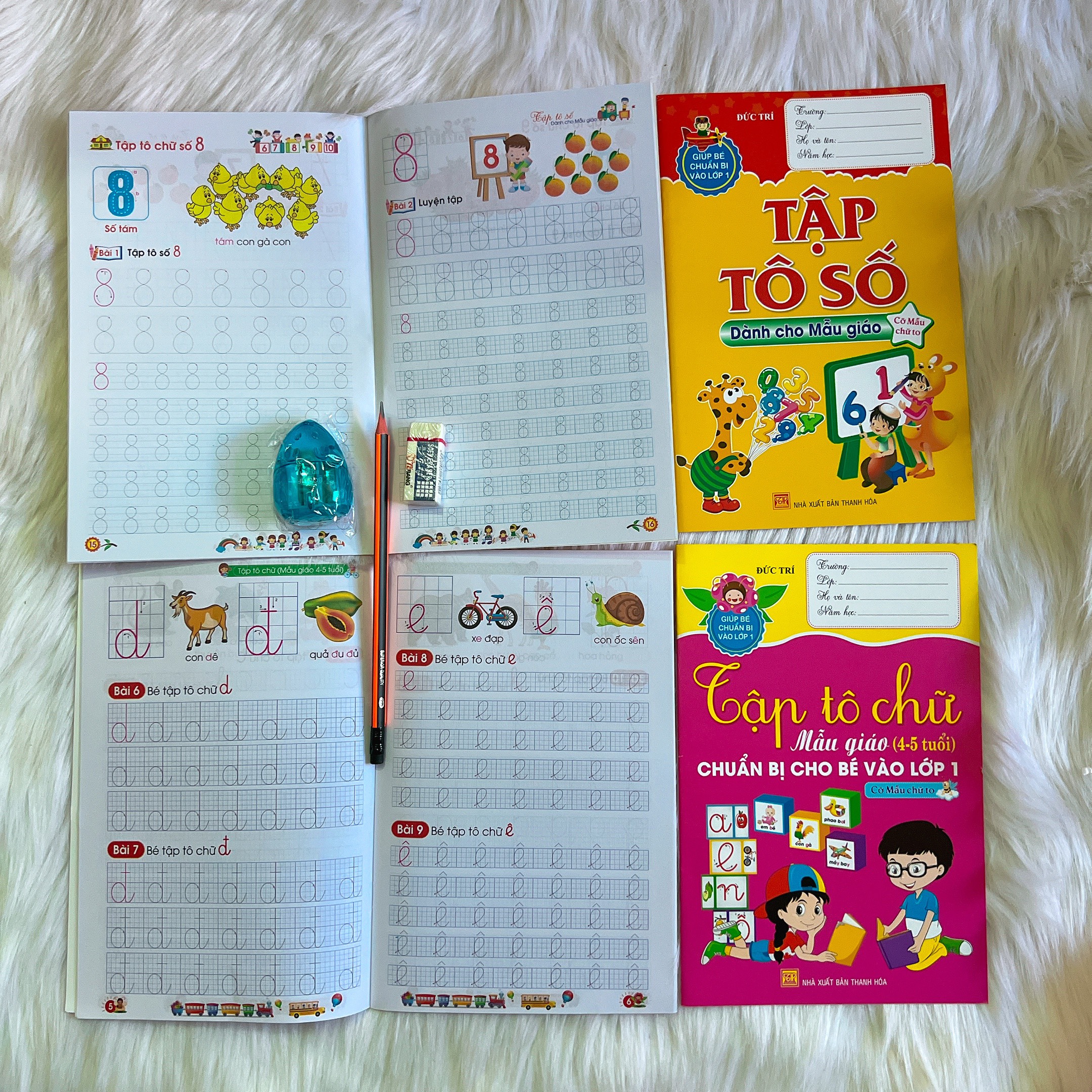 Bộ tập học tô chữ, số, bút chì 2B, gôm, chuốt đủ món cho bé - quà tặng ý nghĩa cho bé