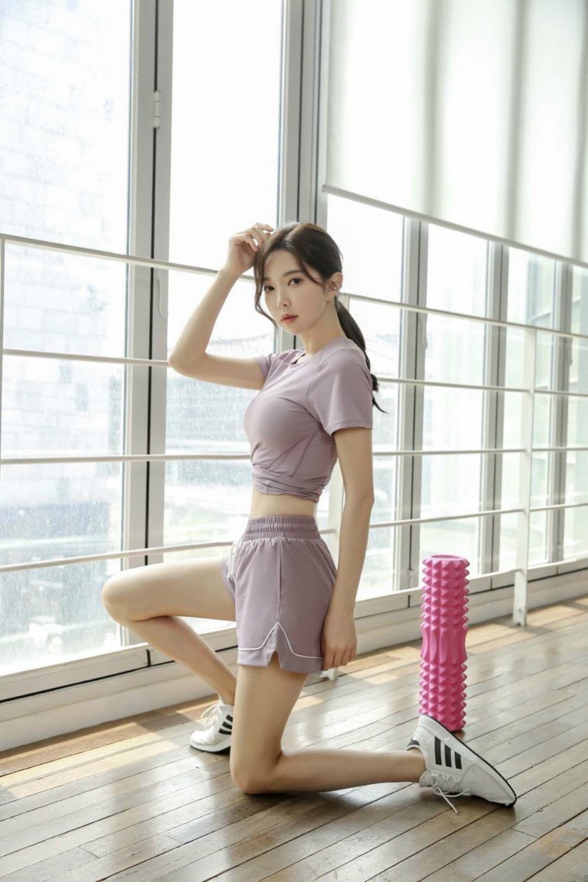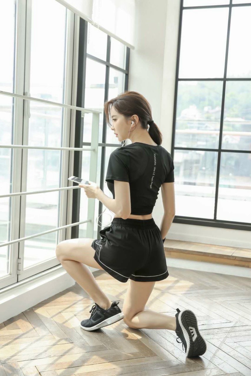 Bộ Đồ Nữ Tập Thể Thao Gồm Quần Short Và Áo cộc Tay Tập Gym, Yoga Chất Thun Cao Cấp