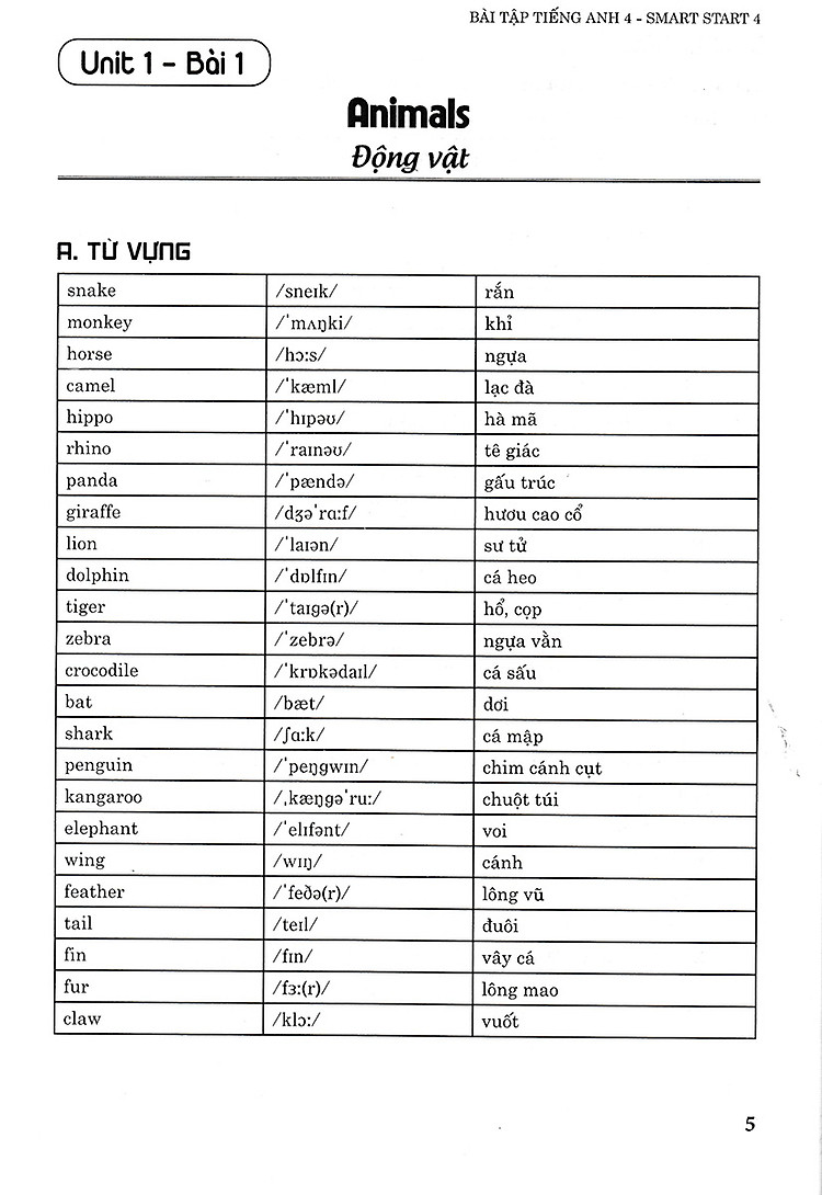 Lưu ý trước khi làm bài tập, các em nên xem qua phần từ vựng và ngữ pháp ở đầu mỗi bài. Phần này không những chú thích ý nghĩa của từng từ vựng mà còn giảng giải chi tiết cách dùng từng mẫu câu. Điều này sẽ giúp các em làm tốt tất cả các bài tập trong sách.