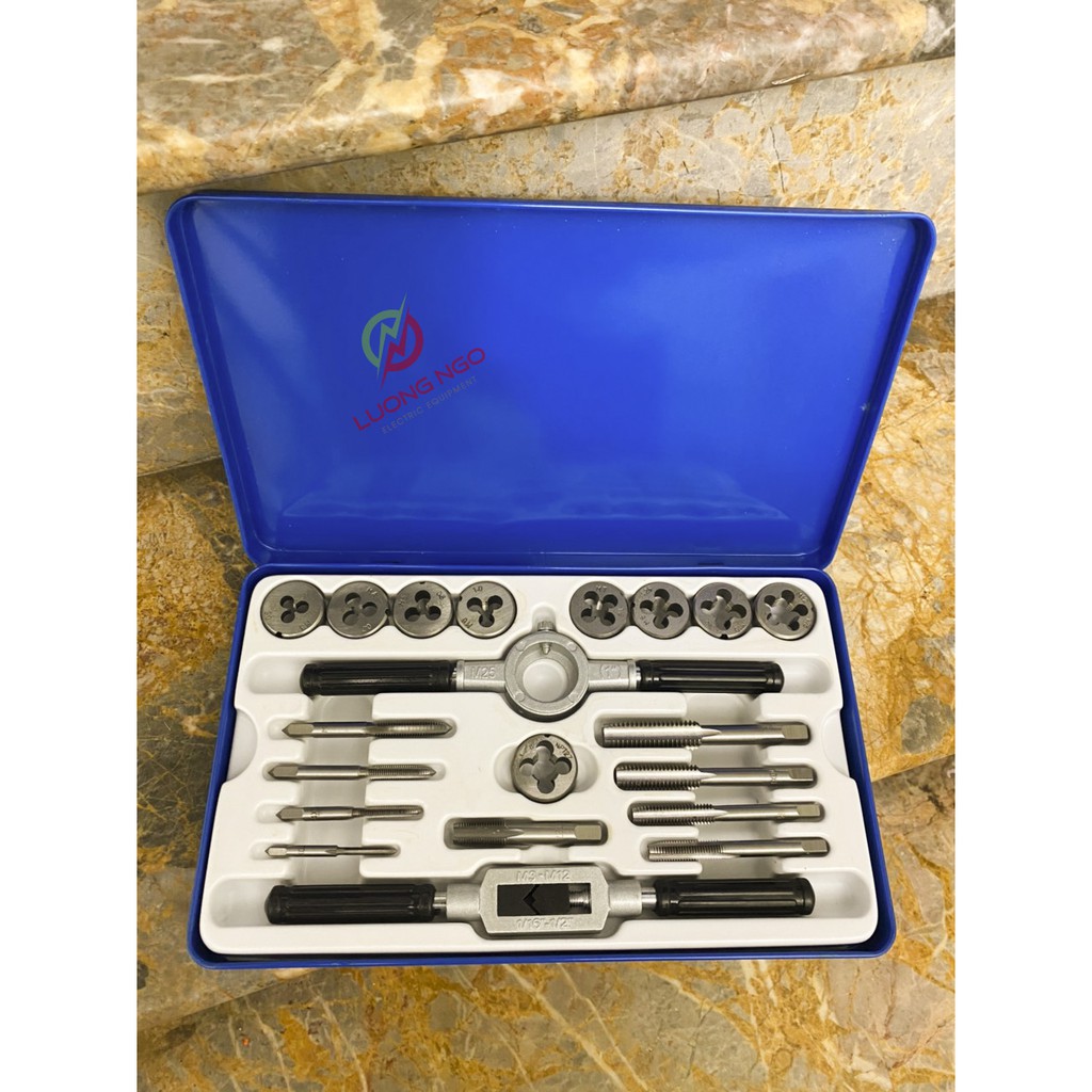 Thay thế nhiều mũi taro khác với kích thước khác nhau Thông số kỹ thuật của bộ taro ren tay: Số lượng: 20 chi tiết: 9 ổ ren răng: M3*0.5, M4*0.7, M5*0.8, M6*1.0, M7*1.0, M8*1.25, M10*1.5, M12*1.75, NPT27*1/8 9 mũi taro ren: M3*0.5, M4*0.7, M5*0.8, M6*1.0, M7*1.0, M8*1.25, M10*1.5, M12*1.75, NPT27*1/8 1 cờ lê: M3-M12 (1/16 - 1/2) 1 ổ ren răng: M25 Chất liệu: thép hợp kim cao cấp Đựng trong hộp sắt