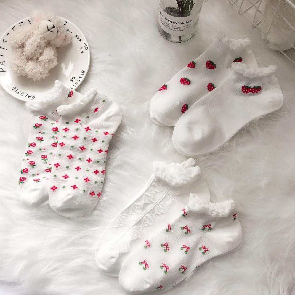Giới thiệu Tất Cổ thấp nữ Dễ thương In hình Hoạt hình Ulzzang Hàn Quốc Vớ nữ Cổ ngắn Cotton Nhật Bản