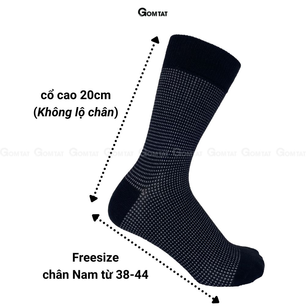 Tất Giày Tây Nam Cổ Cao GOMTAT Chất Liệu Cotton Cao Cấp Êm Chân Thoáng Khí - TATGIAYTAY01-1DOI: Là loại vớ cổ Cao với tone màu cơ bản, rất dễ để phối với giày thể thao, hoặc giày tây công sở, chất liệu cotton khử mùi thoáng khí, êm ái khi sử dụng.