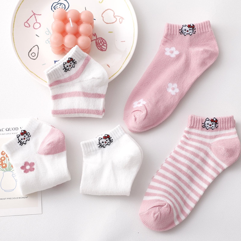 Giới thiệu Tất nữ cổ ngắn, set 5 đôi vớ nữ cổ ngắn METAT họa tiết mèo kitty dễ thương phong cách Hàn Quốc T11B