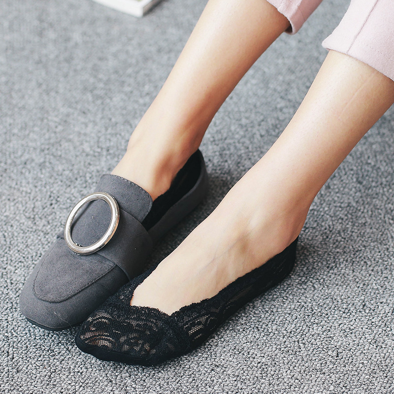 Tất Ren Cotton Cổ Ngắn Chống Trượt hàng thiết kế, thêu hoa, ren cao cấp, đi cực mát chân T01
